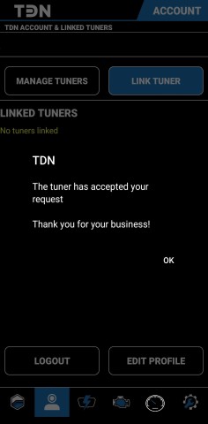 Once the tuner has accepted your request, they will appear under the LINKED TUNERS list. |