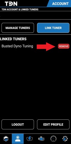 If you no longer work with any tuners under your LINKED TUNERS list, select REMOVE next to the tuners name on the right. |