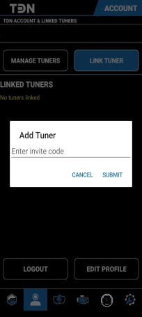 Tap the LINK TUNER tab. Enter the invite code and select SUBMIT. |