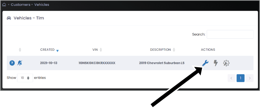 Click on the icon next to the customer to which you are sending a tune. The customer’s vehicle page appears. |