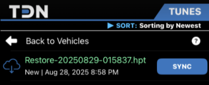 6. The first time a vehicle is read, a file folder for the vehicle will be added to the list at the top of the Tunes screen.