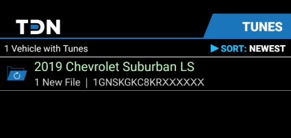 The first time a vehicle is read, a file folder for the vehicle will be added to the list at the top of the Tunes screen. |